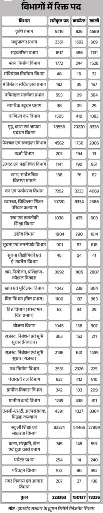 झारखंड सरकार में 73 हजार से अधिक पद खाली, HRMS रिपोर्ट में खुलासा, स्वीकृत हैं 2.23 लाख पद