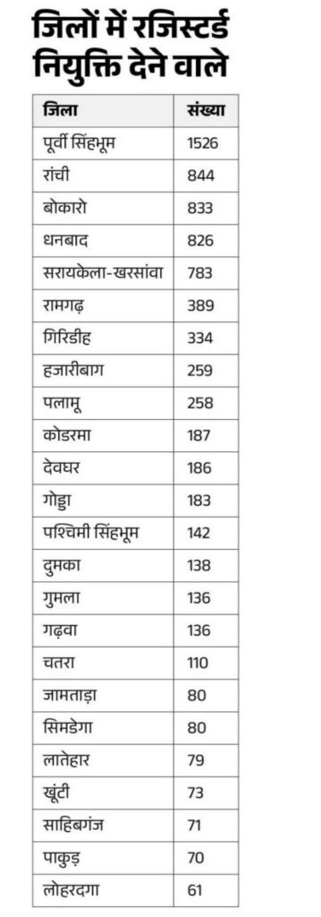 झारखंड में नियोजकों की संख्या बेरोजगारों के मुकाबले बेहद कम है। राज्य के नियोजनालयों में सिर्फ 7,784 रजिस्टर्ड नियोक्ता हैं। इनमें सबसे ज्यादा 1,526 पूर्वी सिंहभूम में और उसके बाद 844 रांची, 833 बोकारो और 826 धनबाद में दर्ज हैं। छोटे जिलों की स्थिति और भी कमजोर है। लोहरदगा में महज 61, पाकुड़ में 70 और खूंटी में केवल 73 नियोक्ता पंजीकृत हैं। जब लाखों युवा रोजगार की तलाश में हों और नियोक्ताओं की संख्या कुछ हजार ही हो, तो बेरोजगारी की खाई और चौड़ी होना स्वाभाविक है।