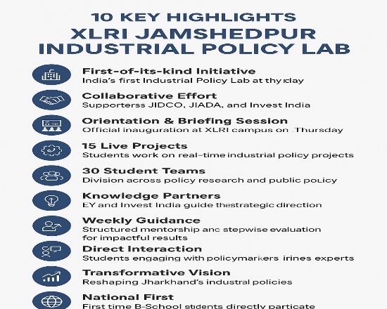 XLRI जमशेदपुर में शुरू हुआ पहला इंडस्ट्रियल पॉलिसी लैब, JIDCO, JIADA, Invest India का साथ, 15 लाइव प्रोजेक्ट्स से जुड़े 30 छात्र